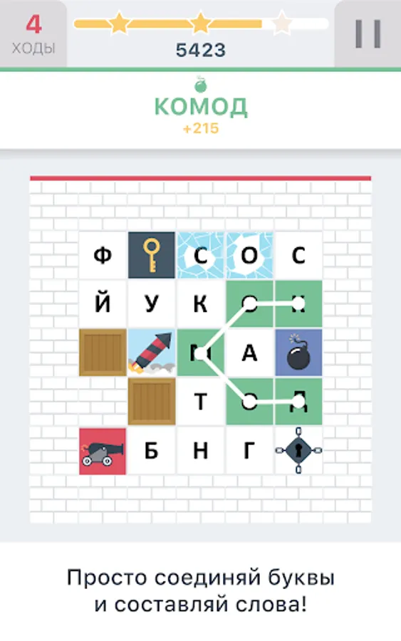 ★ familiar and intuitive gameplay - simply connect the letters into words, and put the chips;