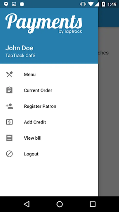 This app provides a demonstration app for performing closed-loop cashless payments with NFC using TapTrack technology using a mock internal database of menu items and categories instead of integrating with an API.