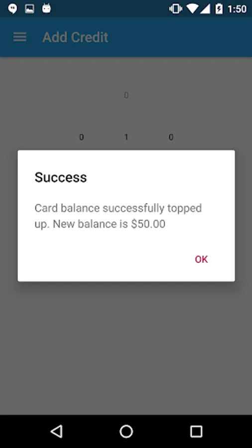 NOTE: In order to provide the most convenient demo experience, this app uses an in-memory virtual representation of an NFC tag to store user balance information. This means that tabs will not be persisted across application restarts, but you can safely use any tag in your possession to simulate the procedure as nothing will be written to it. In an actual cashless payments solution, the app can be configured to write to several different tag types ranging from basic password-protected tags to advanced cryptographically-secured tags.