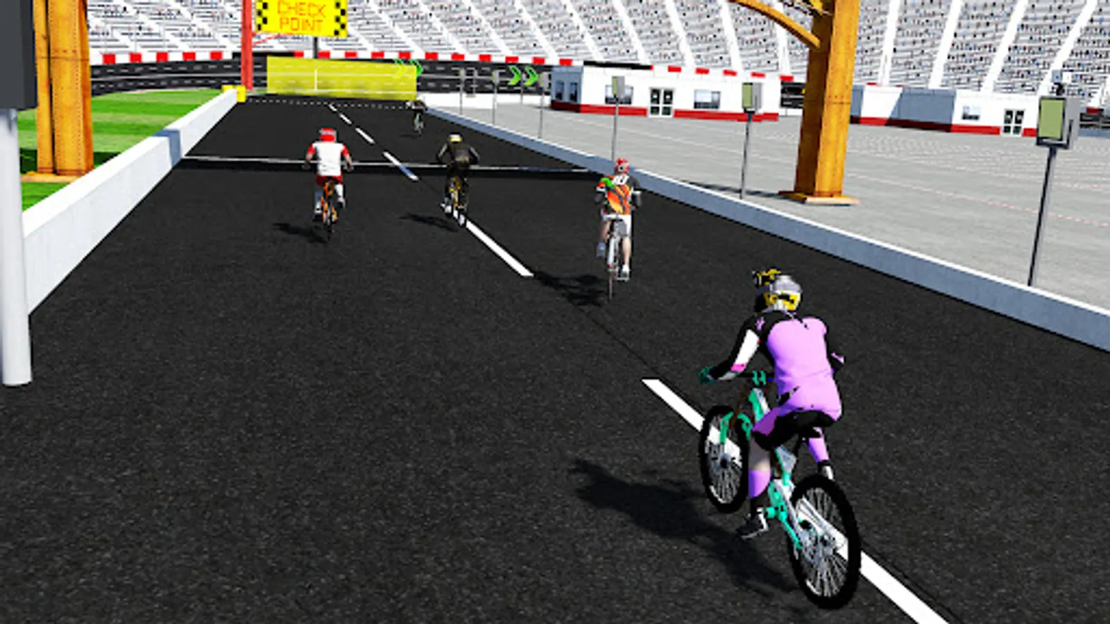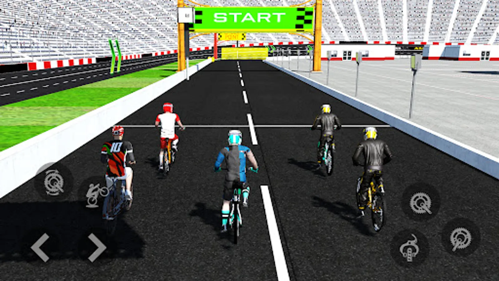 Do wheelie while racing. You are free to show your wheelie bicycle stunts skills. Either choose BMX or a old bicycle you can do wheelie to any. This cycle game come up with wheelie option using that option you show your bicycle stunt skill.Go head-to-head with the best bikers in the stadium of racing.