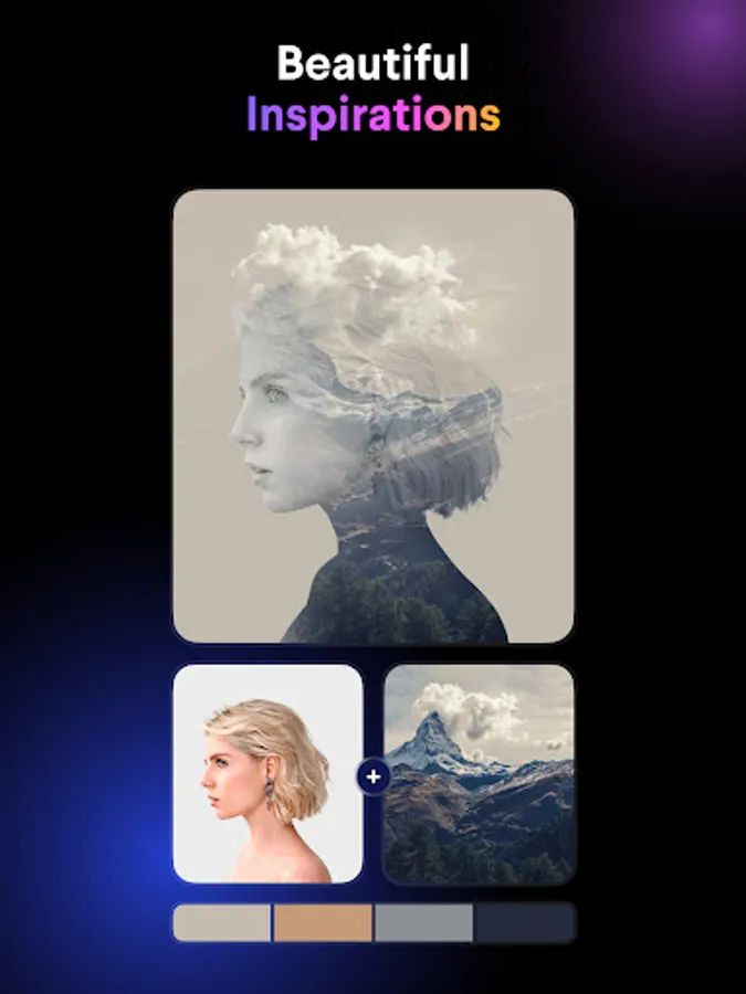 Photo blender with beautiful effects using Blend Photos. Create double exposure image in a few taps. With Blend Photos, you can access to full range of photo blender & picture overlay featues. Quickly and easily level up your photo mixer.