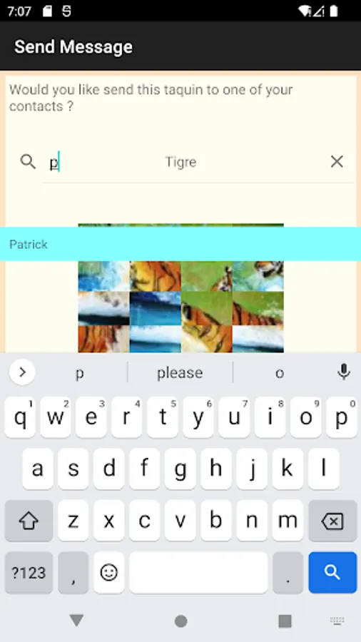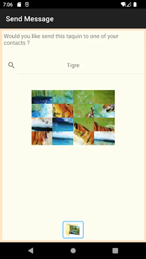 The fifteen puzzle game received will have to be placed in the "Taquin_contact" directory created in the Gallery, they will be directly accessible from the application.