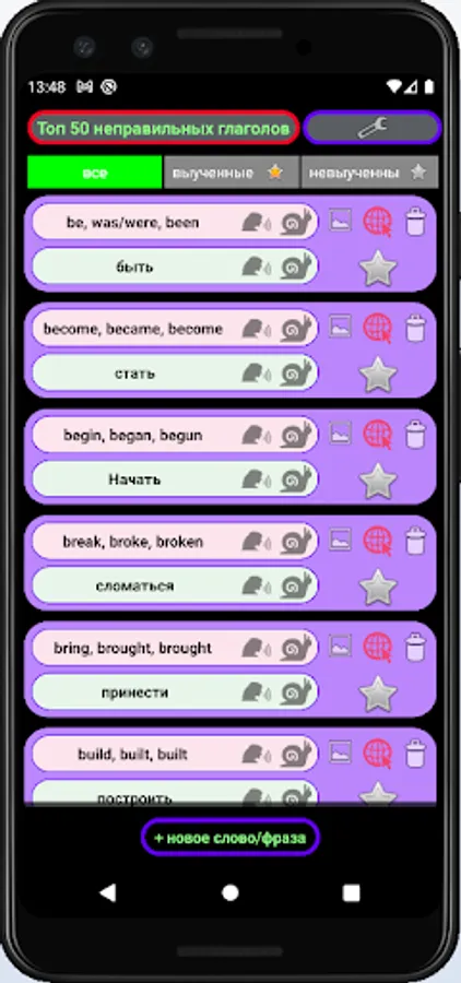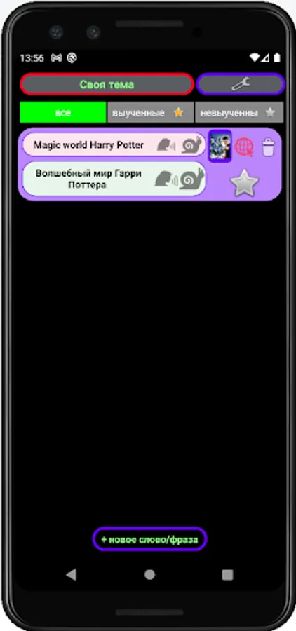 In it, you just need to select the desired theme and turn it on. Further, he himself will play voice reminders that are effectively deposited in your brain. You can not even touch the phone, but go about your business. If you are not as lazy as me, then you can create your own topics there😁. Create your own lists of words and texts and learn them as mentioned above or just by logging into the app. In the application, you can always listen to how a word or phrase sounds, as well as translate texts from English into your language or from your language into English. This can be done offline.