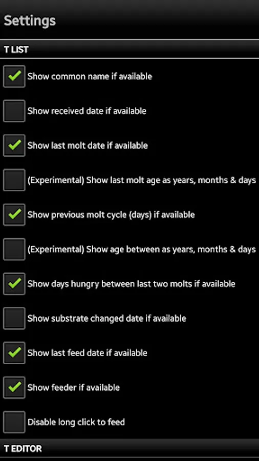 - Shows molt history with option to add days hungry before the molt and days between the last molt dates, may help predict/estimate when the next molt will be