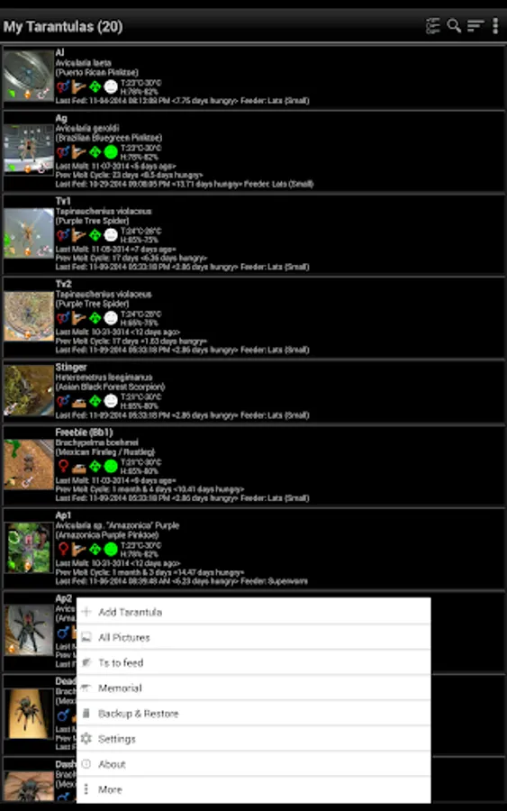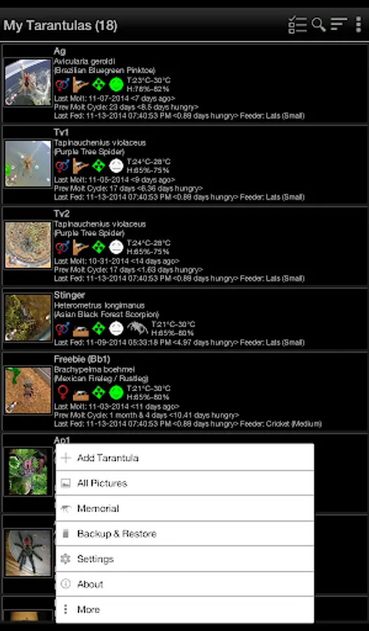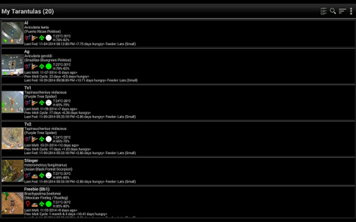 This app helps you organize your tarantula collection.