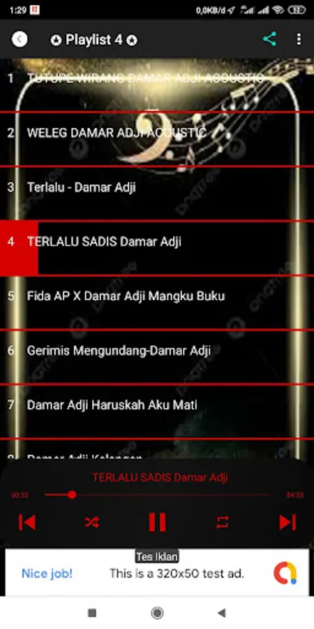 The offline mode feature of the Damar Adji Full Album Song application allows you to enjoy music comfortably without having to use your internet quota, so download the application right away and enjoy the music collection, hope you are entertained.