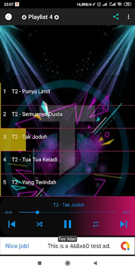 The T2 Full Album Offline music song application is a music player application that contains a collection of Offline Indonesian Pop songs which can be enjoyed offline without using a quota, this offline Tika Tiwi song application has a fairly attractive appearance, very light and easy to use, with the T2 song application With this Full Album Mp3, you can enjoy a collection of Indonesian Pop Offline Mp3 music.