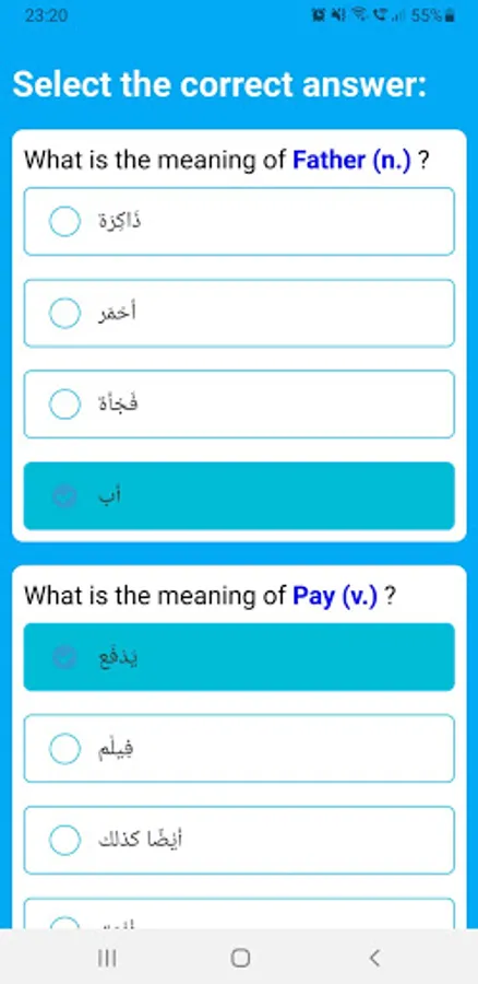 بإمكانك إجراء تمارين من أجل فحص مدى تمكُّنك من الكلمات الّتي قُمْتَ بحفظها.