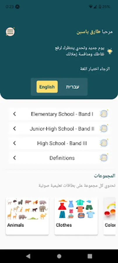 (My lexis) application includes all the words required of each student, through his educational process in both languages: English and Hebrew.
