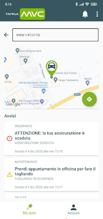 NB: the service can only be activated after installing a Targa Telematics GPS device, enabling the device by an authorized installer, and registering the user. "