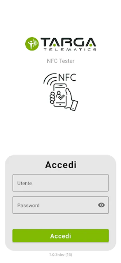 Application to verify the correct functioning of the RFID / NFC reader. This tool is integrated with the Targa Telematics Testing App to validate the testing of on-board telematics installations on vehicles.