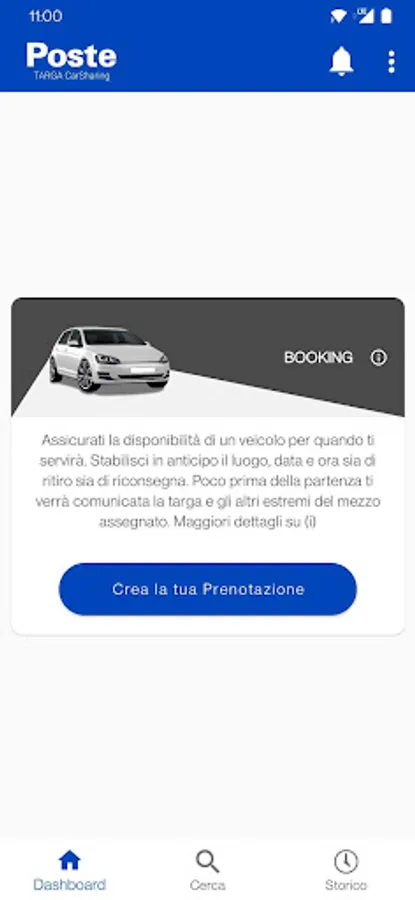 The app is a tool for Poste Italiane drivers to use shared cars easily and efficiently.