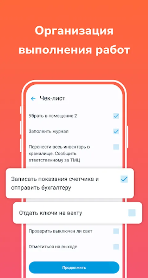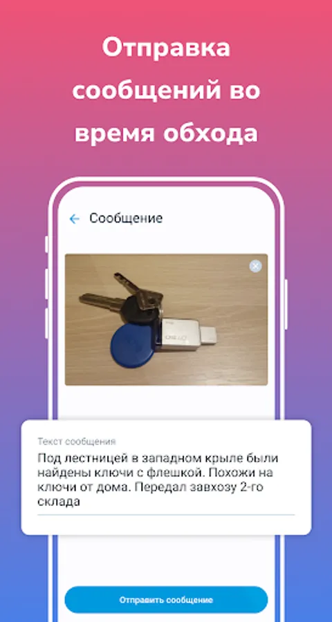 If necessary, the performer can create and send photos, text messages on the state of the object through the same smartphone. The system will save all received data and provide them to managers in the form of convenient reports or notifications.