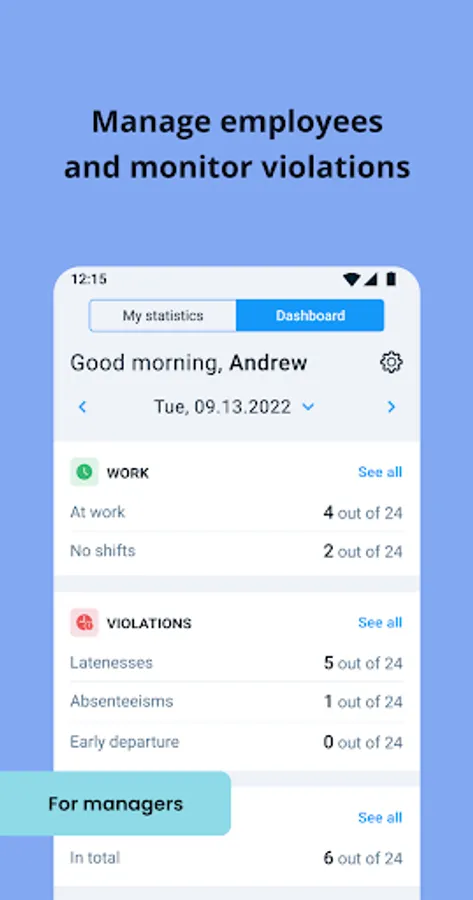 ・Quickly coordinate violations, time off, sick leave, holidays right on your smartphone