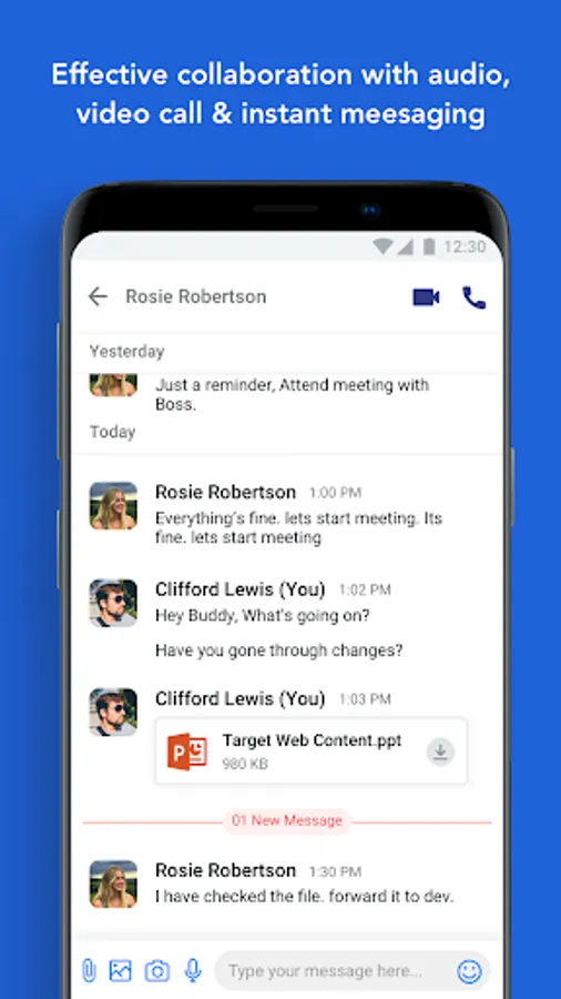 Communicate with your team members anywhere at any time by using video &/or audio calls. No longer rely on antiquated external apps to provide your instant messaging needs. We provide a fully integrated instant messaging tool that is omnipresent wherever you are on the platform. Share files and ideas at the click of a button.
