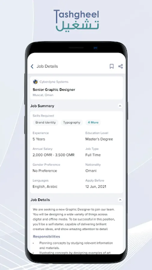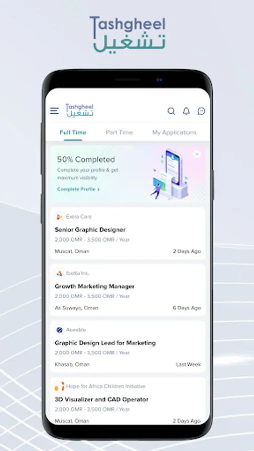 Install the free Tashgheel app, build your profile and find your dream job.