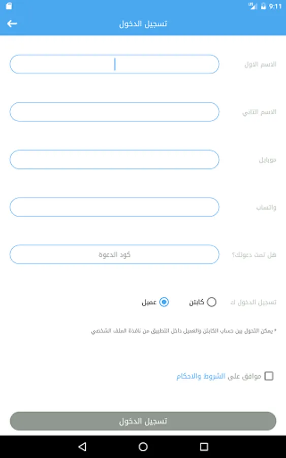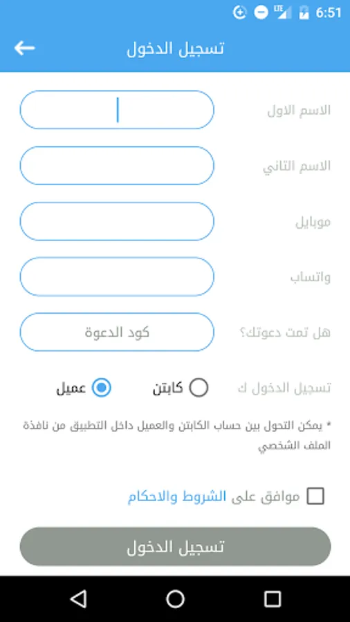 الكابتن والعميل لهما نفس التطبيق ويمكن التحول بينهما من نافذة الملف الشخصي.
