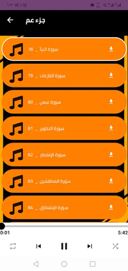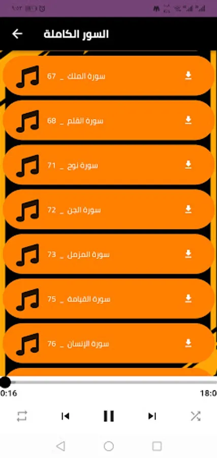 The Tariq Muhammad Noble Qur’an application allows you to hear and download the Noble Qur’an with the voice of the reciter Tariq Muhammad, and you can download the Noble Qur’an to your mobile phone easily and conveniently through one application that includes humbled recitations of the Noble Qur’an mp3 with the voice of the Noble Qur’an in the voice of Tariq Muhammad