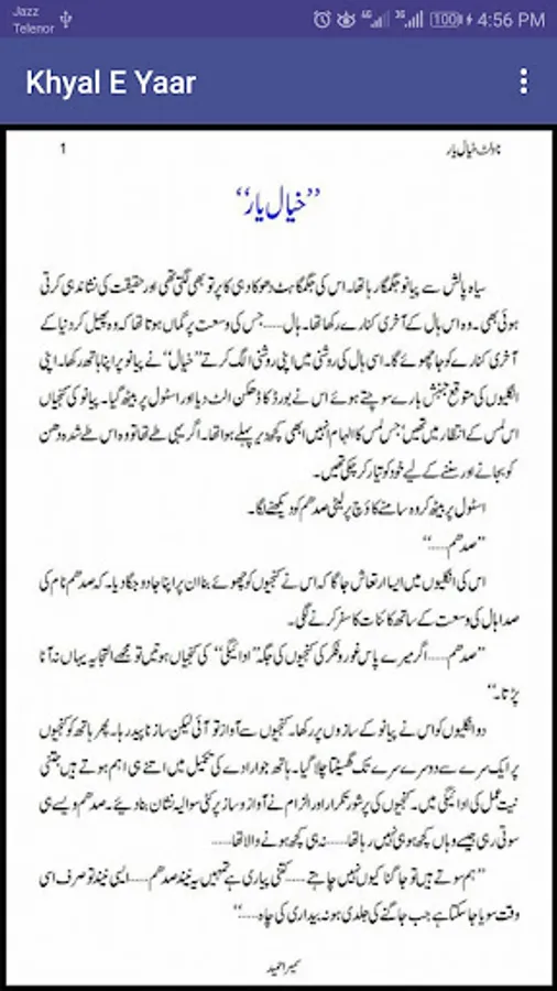 Khyal E Yaar is a short novel written by famous writer of Pakistan Sumaira Hameed.