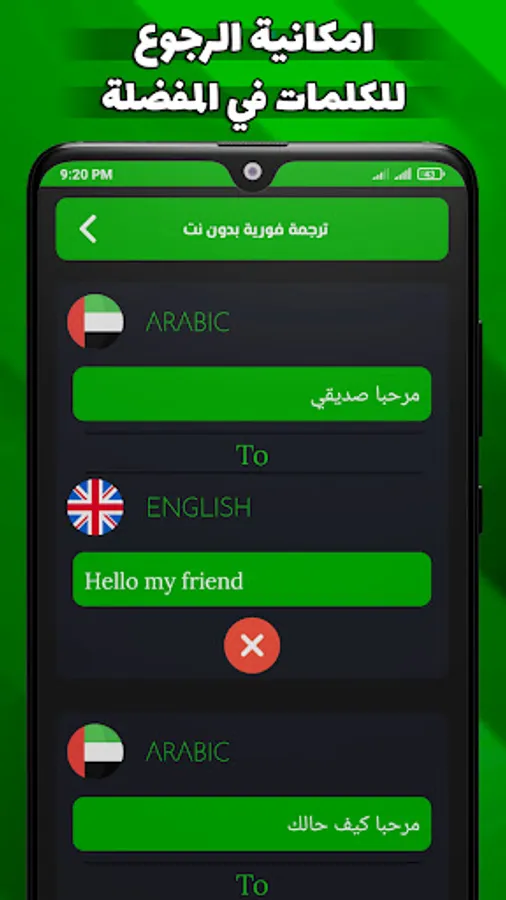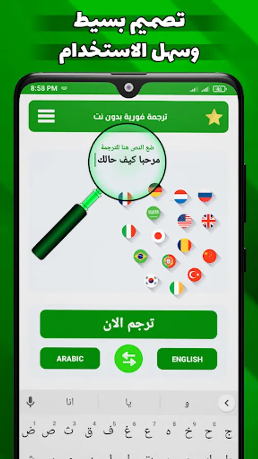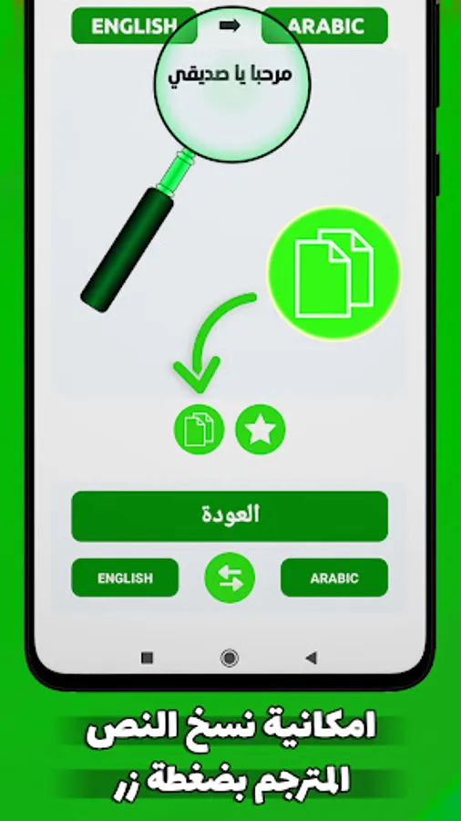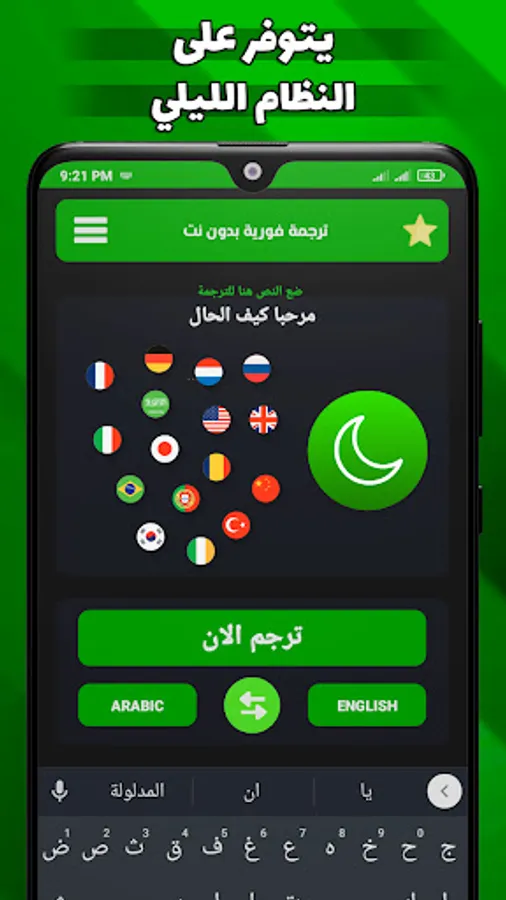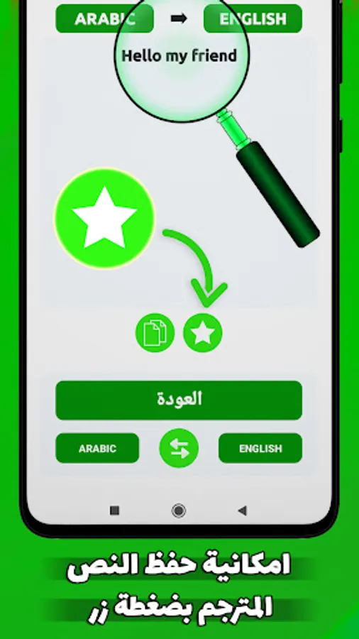 A simultaneous translation application without the net that enables you to live a fast and simplified experience on Android devices in translating without the Internet from English into Arabic and also translating from English into Arabic by writing