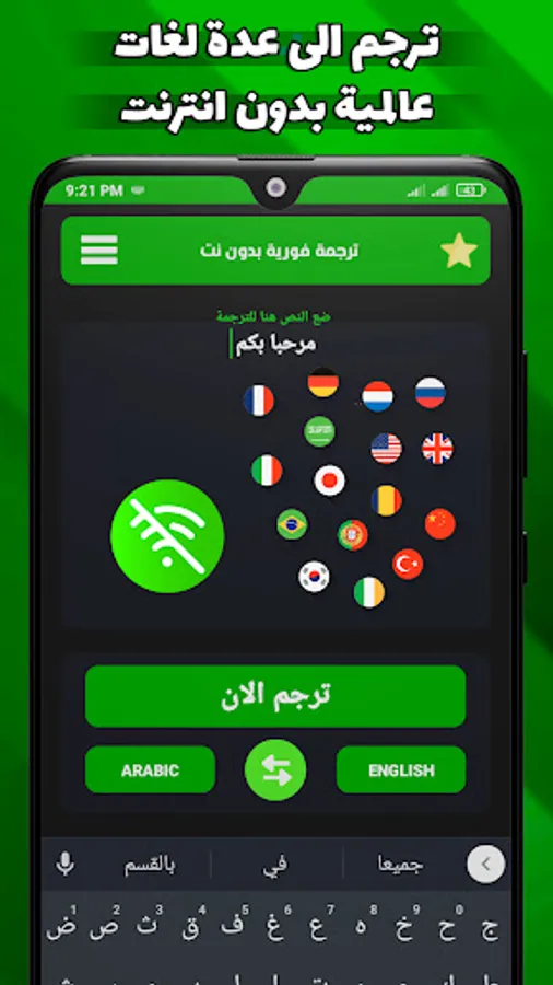 The application allows you to translate without the Internet or simultaneous translation in English in many languages. Do not worry, we will add many languages, God willing.