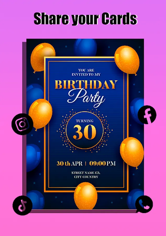 Birthday Card Maker with Music also provides users with the ability to share the card directly from the app through social media platforms or messaging apps. Users can also save the card to their device's photo gallery.