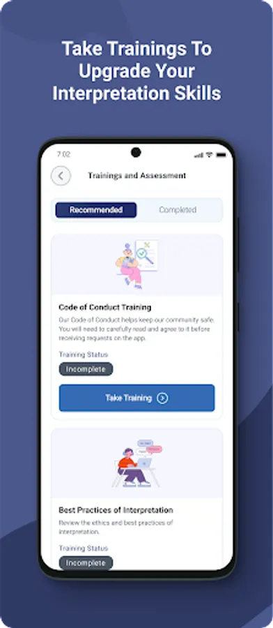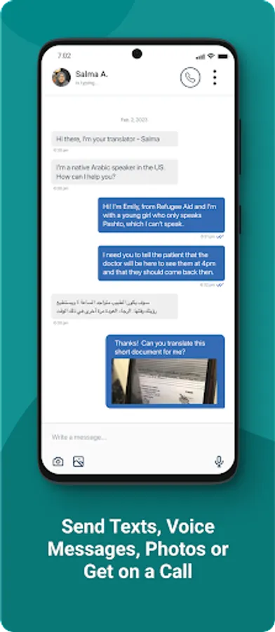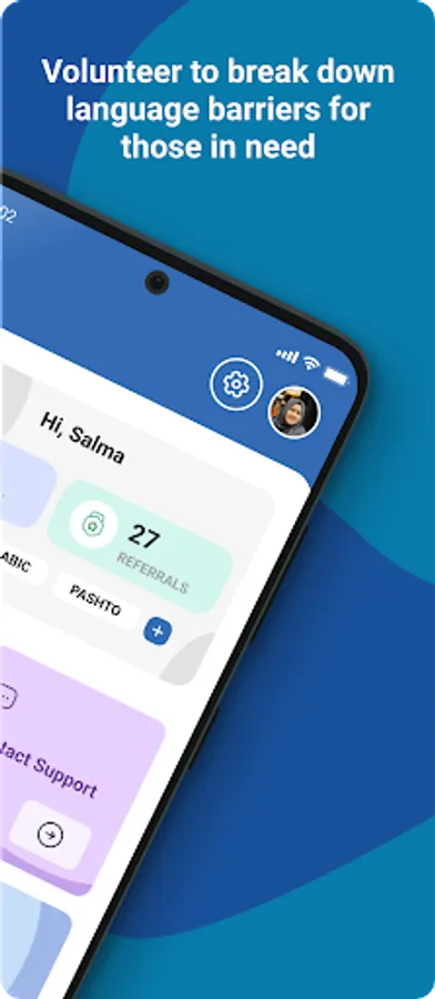 1 - Bilinguals sign up and get notified whenever a refugee needs a translator. They connect in a live session where they can send text, pictures, documents, or get on a phone call. High performing volunteers can even become certified!