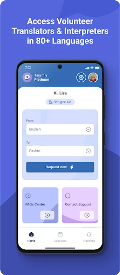 2 - Refugees and Aid Workers sign up and request a translator based on their needs (like asylum interviews, emergency medicine, navigating a new country, or any humanitarian need). Tarjimly uses machine learning to connect them the best available translator in seconds.