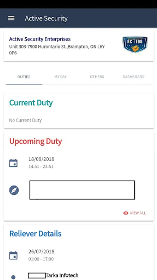 The employees of Active Security Enterprises can view their upcoming and current ongoing duties and manage their duties at their fingertips. The guards can accept or reject the duties assigned to them. They can even see the number of hours worked and the gross salary for those hours.