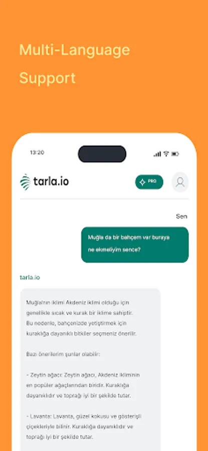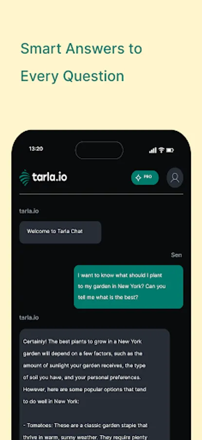 Tarla Chat, Turkey's first AI-supported agriculture application, merges agriculture and technology! With this innovative application, you can access all kinds of information about agriculture. From plant health to planting times, from harvest processes to weather conditions, everything you need is in your pocket.