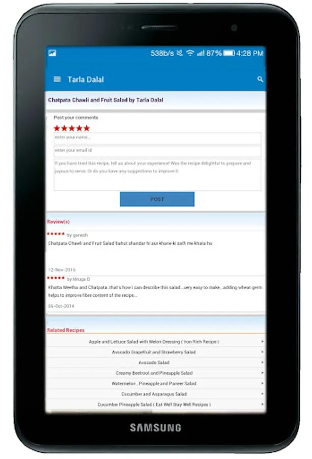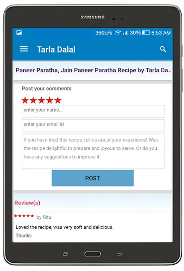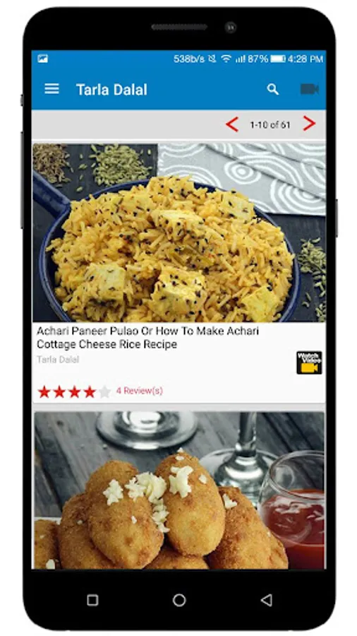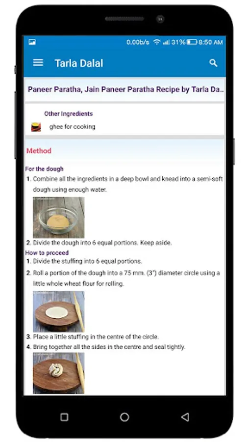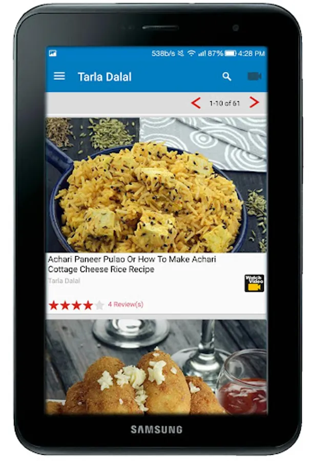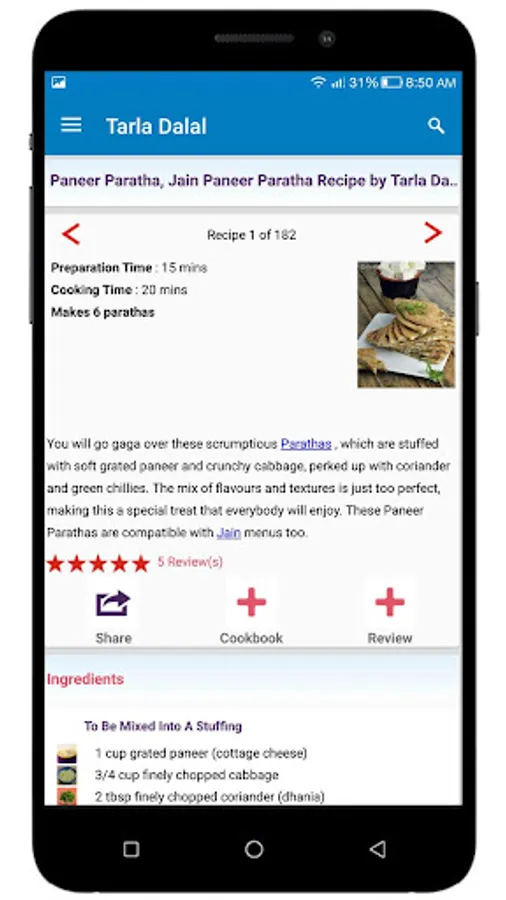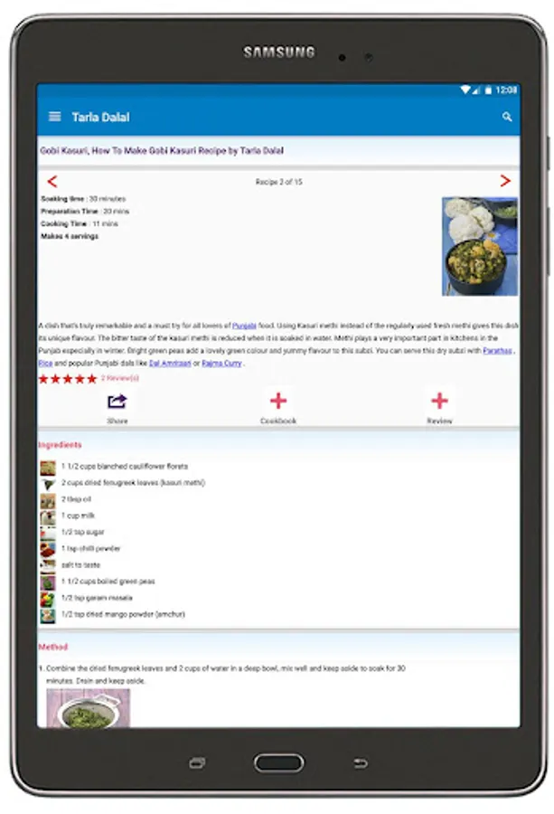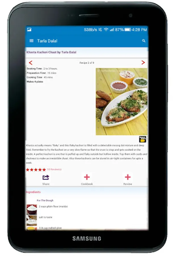 An Indian Recipe app with recipes from all cuisines and courses by Tarla Dalal.