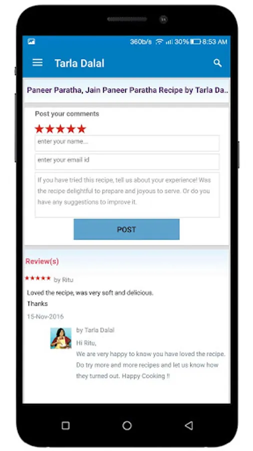 7. Have a glimpse of comments posted by Tarla Dalal fans and share your comments too.