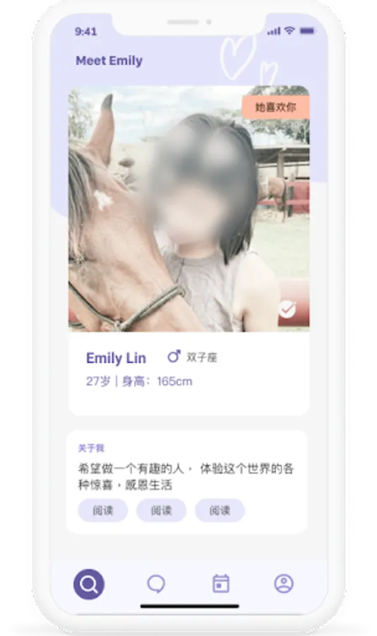 1. 模糊照片:所有照片中的人像都作了模糊处理。我们希望大家能对用户的内在多一刻的关注,不再因为一张“照骗”而错过了一个有趣的灵魂。