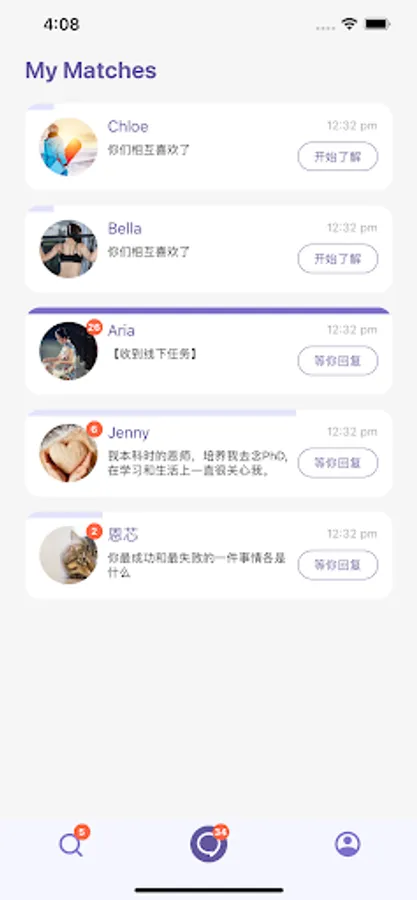 2. 深度了解,灵魂发问:如果双方对profile互点了小心心,将进入互动环节。在这个环节中,双方都要向对方提出3个问题,并且回答对方的问题。