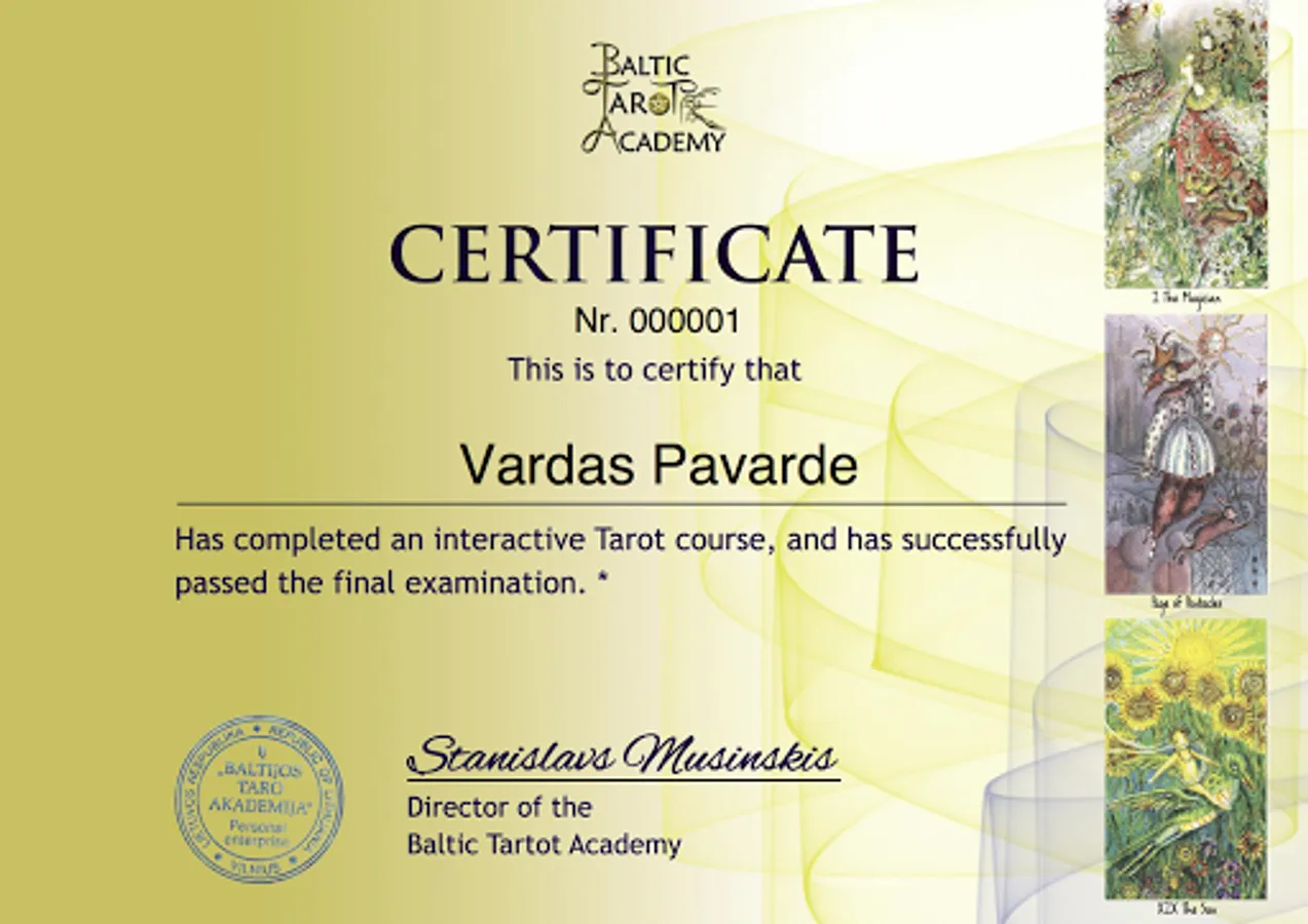 The learning program is the part of the authoring system of divination course at the Baltic Academy of Tarot. For over 10 years, more than 1,000 students studied through this system. Many of them have their own successful private practice in different countries.