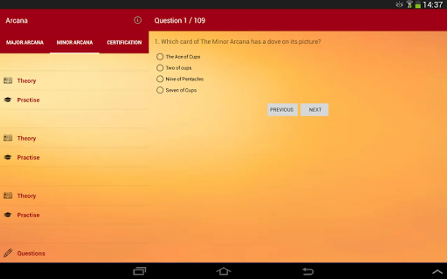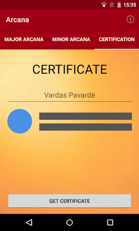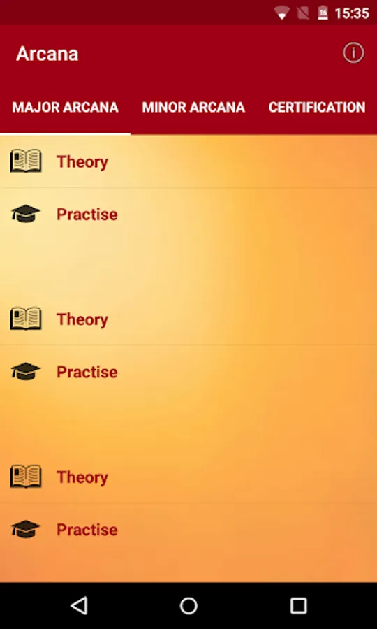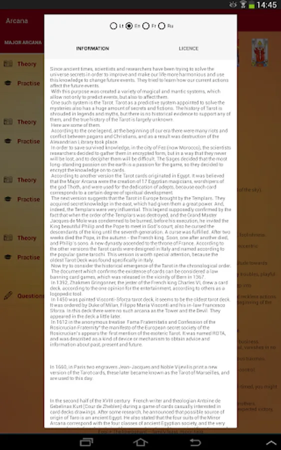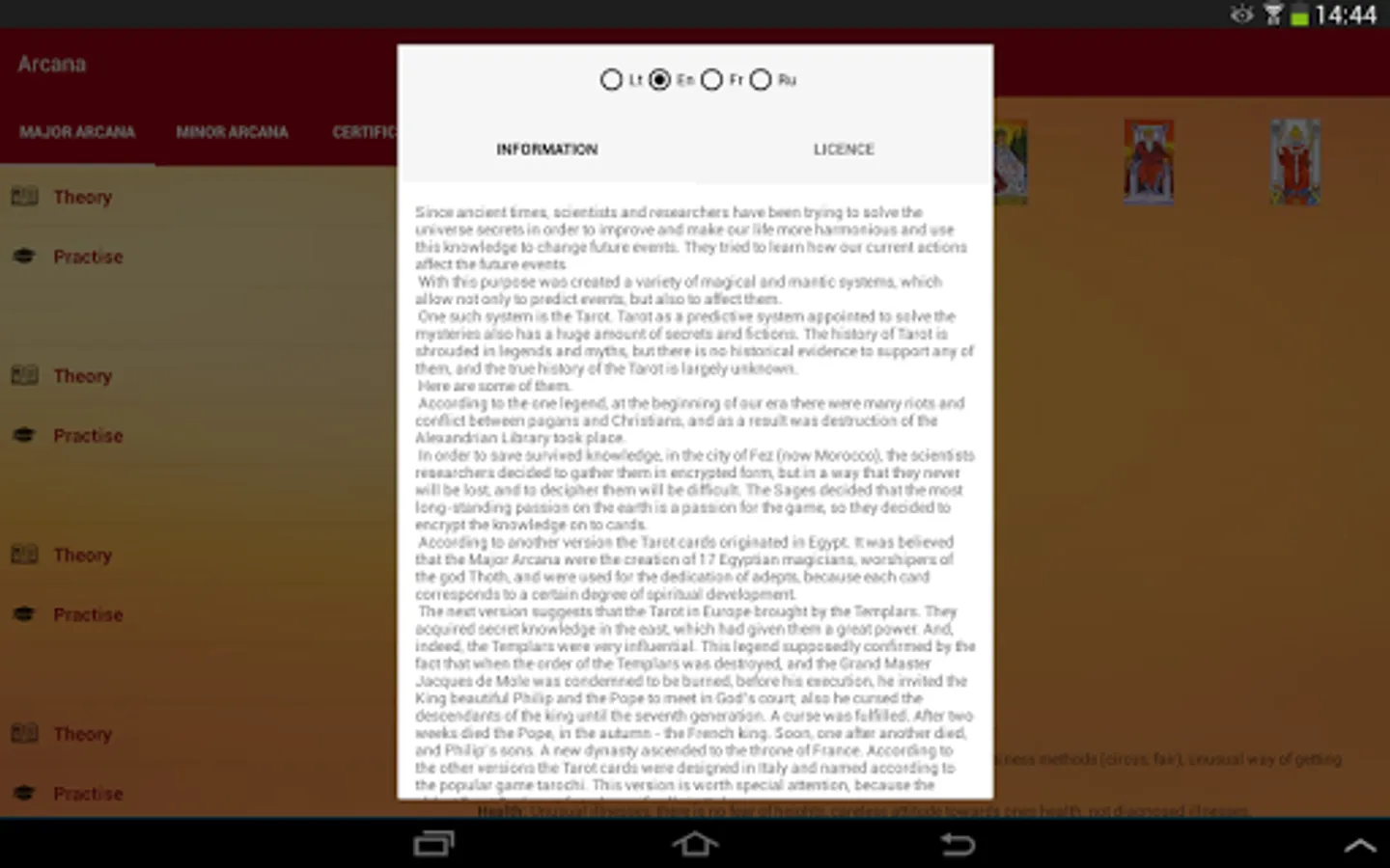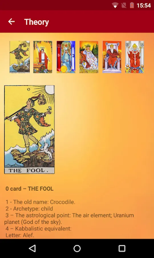 * In practical course you will learn How to Conduct a Tarot Reading, how to find the significator for your client, you will find out about 22 psychological types of your clients and you will use the spreads that are used by the author of the application.