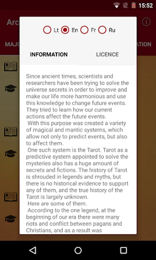 TAROT ACADEMY is a program that helps you to make yourself a master of Tarot cards from Tarot beginners to Tarot master level.