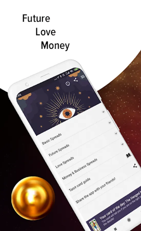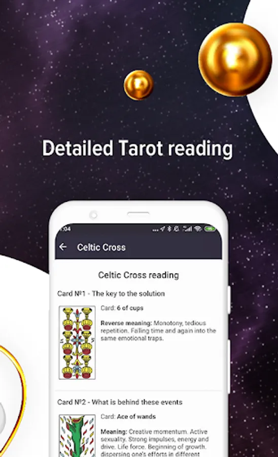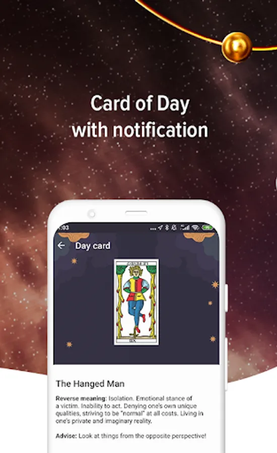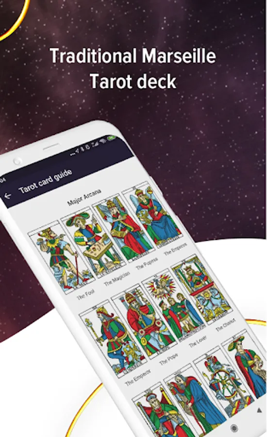 The app uses images of the Marseille Tarot and card values from Dr. Yoav Ben-Dov (CBD Tarot de Marseille). This is an exact reproduction of traditional Tarot cards. It is based on a standard deck published in Marseille by Nicholas Envelope in 1760.