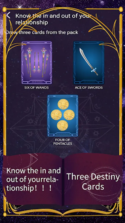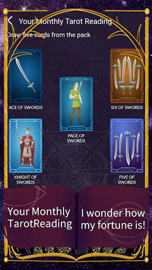 You can choose a quiet place, concentrate, think about your problems and choose a card. After the selection, you can check the interpretation of this card, and share the interpretation with your friends. Of course, you can also speculate for your friends to see how their fortunes are.