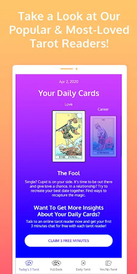 Tarot card meanings can be deciphered by a real tarot reader who has years of experience. Over and above our free daily tarot card, free tarot readings, and YES/NO tarot readings that our Tarot Decks App offers, we also offer you the opportunity to speak to a live psychic who is skilled in reading tarot cards and can help you move forward with your questions!