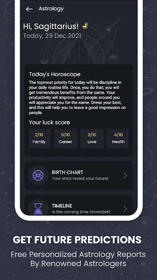 ➤Free Daily Predictions: Get a glimpse of your love, career, finance, family, & health forecast for the day. Know your luck score & auspicious time through this reading.