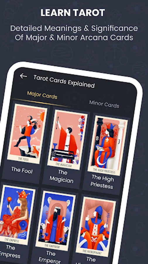 ➤Learn Tarot Card Meanings: Learn the upright & reversed meaning of Minor Arcana and Major Arcana cards with Tarot Insights app.