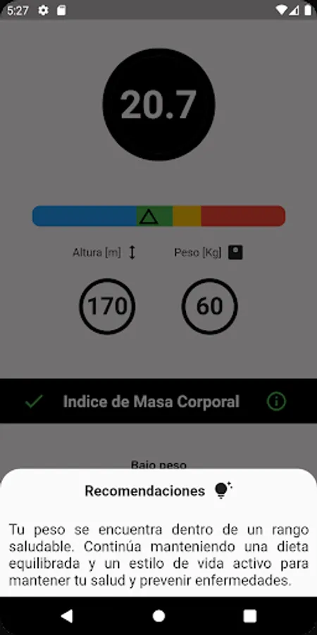 BMI Calculator is a mobile application that focuses on providing a calculation of the body mass index (BMI) from the weight and height data entered by the user. This app offers a simple and quick tool to know the state of body composition and helps determine if you are in a normal weight range, overweight, obese or underweight. The app is easy to use and offers a fast and accurate measurement system so that users can monitor their health and weight at all times.