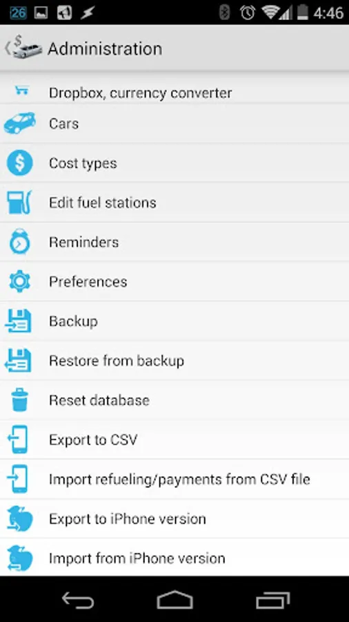 ✔ Export of fuel logs and payments to SDCard in CSV format