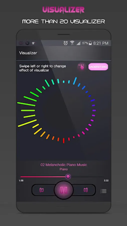 Music Visualizer plays music and renders beautiful visualized effects with Snoop mode It changes all the time.