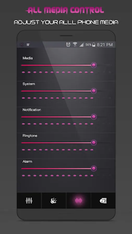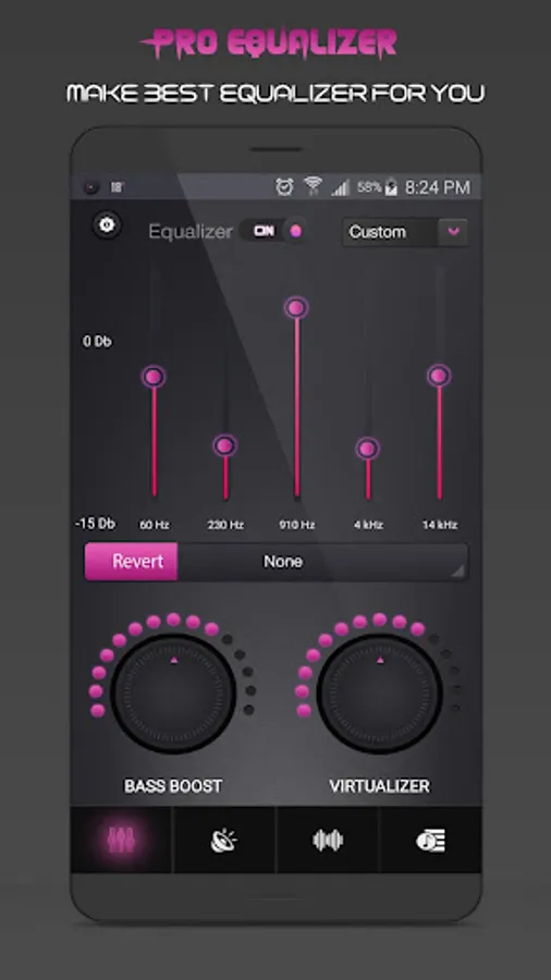 Equalizer lets you adjust sound effect levels so that you get the best out of your Music or Audio coming out of your phone.