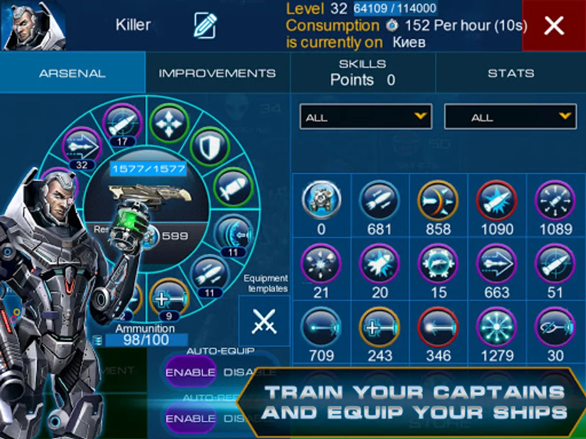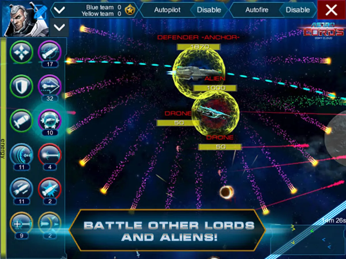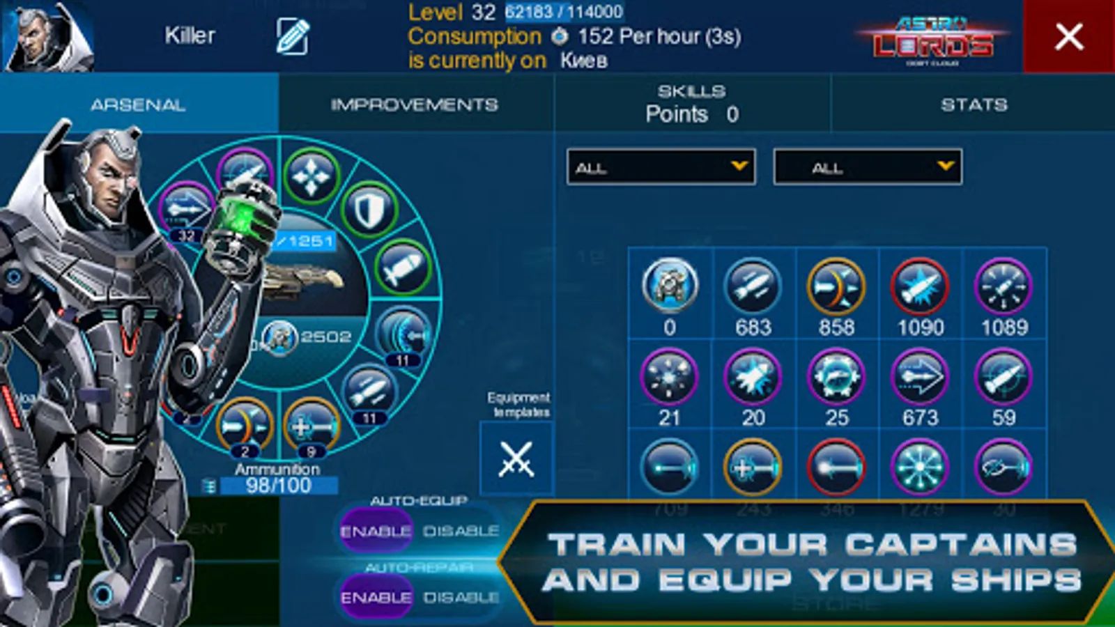 Leading the charge against your enemies are the Captains. You can recruit up to 6 Captains from 7 different classes. Will you recruit a Warrior and focus your efforts on combat? A Scientist, to boost your research output? A Spy, to keep tabs on other Astro Lords and alien bases? With over 50 different skills to develop, you can tailor your Captains to suit your gameplay style. Each Captain can be fully controlled in battle against other players and AI alien enemies, and will fight to defend your base while you're offline too.