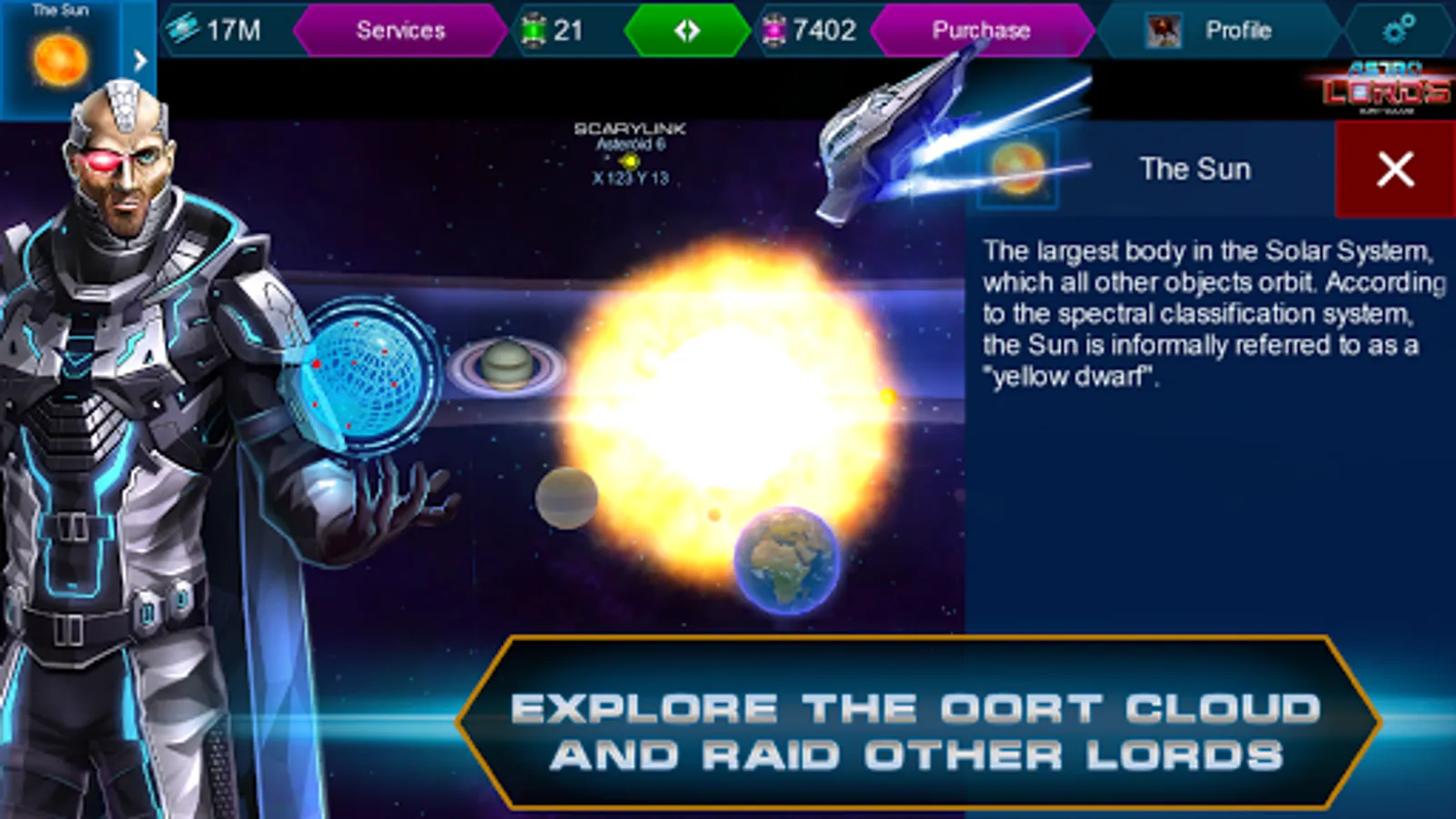 Astro Lords Mobile is a free 3D MMO, Space RTS strategy game that combines the excitement of real time combat with construction management and strategy elements such as exploration, raiding and espionage.
