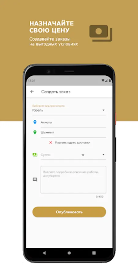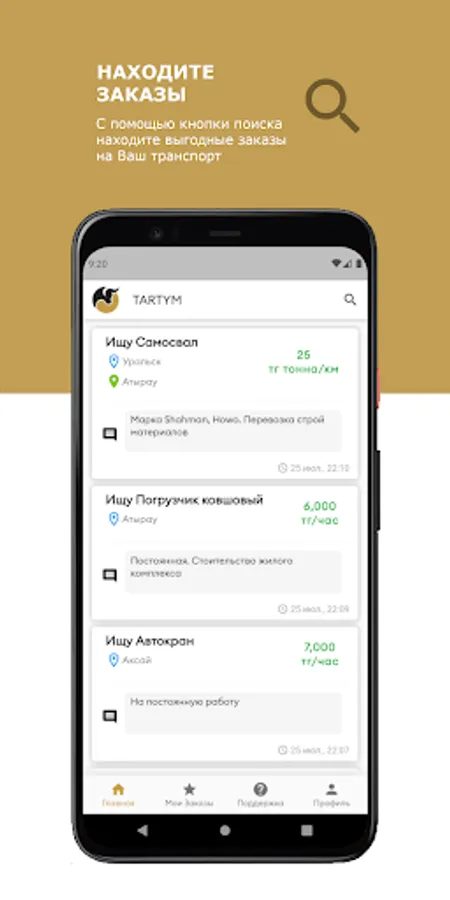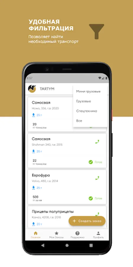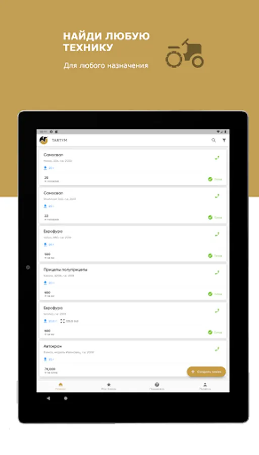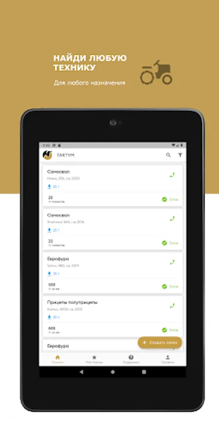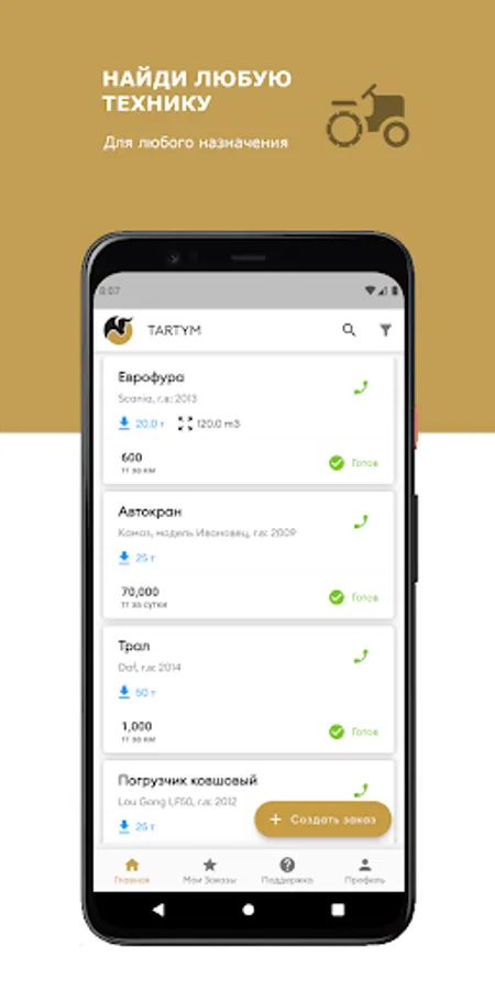 The application allows you to connect the customer with the owners of specials. technology. The customer publishes the order, where the contractor (owner of special equipment) sees orders in real time. Moreover, upon publication, the contractor receives a notification about a new order. After accepting the order, the phone number of the customer and the contractor becomes available.