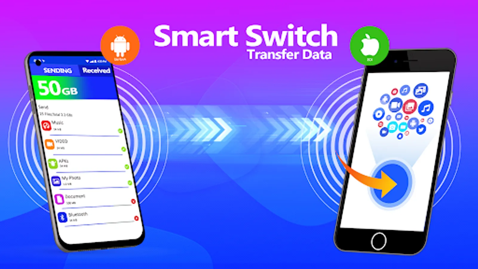Smart Switch All Data Transfer app is as wished to all android and iphone users. Smart Switch app is used for file eraser transfer in your old mobile to new mobile within a second you choose photos, files and important data pdf documents.